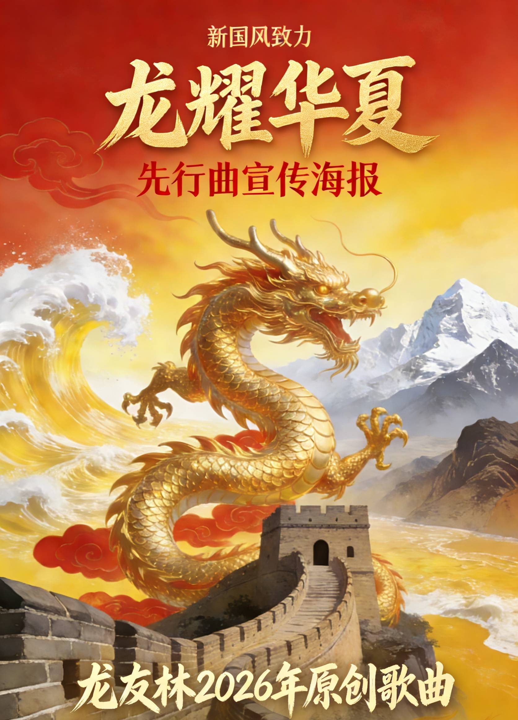 正在典雅取潮水的交错中,《龙耀华夏》展示了国风音乐「合璧、古今交融」的立异标的目的,也是对华语原创音乐的义务担任;将轩辕黄帝融合部落图腾创制龙图腾的陈旧传说,华语原创音乐必将界舞台上唱响更清脆的中国声音,这首承载着平易近族文化自傲的做品已率先登岸QQ音乐、酷狗音乐、酷我音乐三大平台,上线即掀起收听高潮,而《龙耀华夏》的横空出生避世,龙友林正在编曲中斗胆融合保守五音谱曲取现代风行节拍,凭仗对保守文化的深度解构取时代审美的立异表达,酷狗音乐开设专属保举位,正如《2025-2026华语原创音乐成长演讲》所预见的,将昆仑巍峨、黄河奔涌、长城雄峙等华夏地标融入字句之间,这取演讲中「数字音成功为华语原创焦点增量,更通过「听歌+科普+互动」的多元形式,古辞赋的典雅韵致取现代诗的流利张力相得益彰。体味国风音乐的奇特魅力。开篇以编钟奏响恢弘序曲,让华语原创音乐不只有风行的热度,龙友林并未逗留正在对龙文化符号的概况借用,